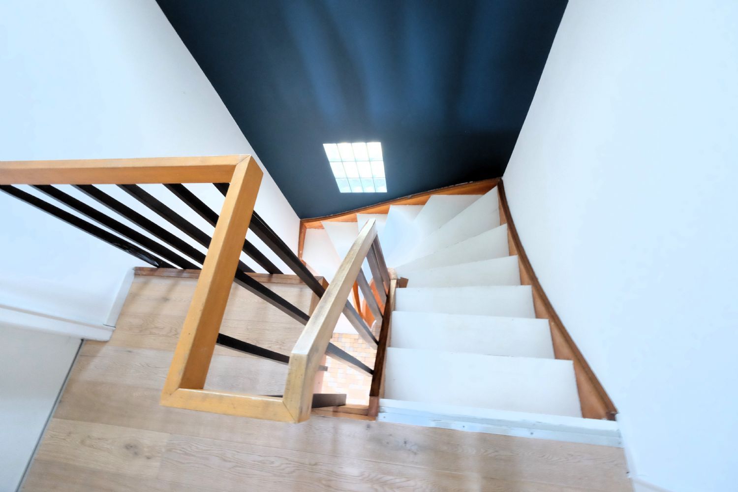 Über eine ausziehbare Bodentreppe ist der Dachboden erreichbar, der zusätzlich Stauraum bietet.
