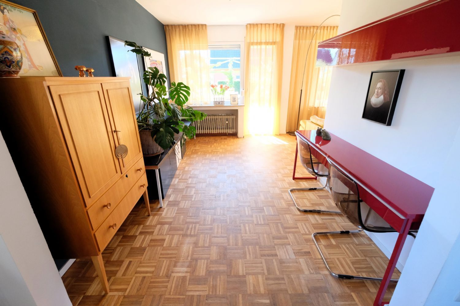 Beim Betreten des Hauses empfängt Sie ein heller Eingangsbereich mit gefliestem Flur. Rechterhand befinden sich ein Gäste-WC mit Waschbecken sowie eine praktische Garderobe. Linkerhand öffnet sich die großzügige Wohnküche mit integrierten Einbaugeräten. Der hochwertige Parkettboden sorgt für ein behagliches Wohngefühl. Vom Küchenbereich gelangt man in das gemütliche Wohnzimmer. Anschließend bietet sich über Terrassentüren der Zugang zur Terrasse, die zu entspannten Stunden einlädt und einen nahtlosen Übergang zwischen Innen- und Außenbereich schafft.